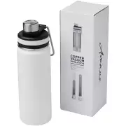 Odolná dvoustěnná lahev z nerezové oceli s vakuovo-měděnou izolací. Udrží vaše nápoje teplé po dobu minimálně 12 hodin a studené po dobu 48 hodin. Na vnějších stěnách termosky navíc nedochází ke kondenzaci. Obsahuje víčko na závit z nerezové oceli s pohodlným úchytem pro přenášení. Duální konstrukce otevírání pro snadné čištění a plnění. Objem 590 ml. Výrobek je dodáván v dárkové krabičce.