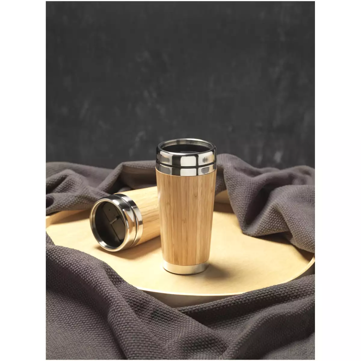 Tento dvoustěnný kelímek s tepelnou izolací je vyrobený z nerezové oceli a má přírodní povrchovou úpravu z bambusu. Udrží nápoje horké po dobu až 2 hodin a studené po dobu až 4 hodin. Z kelímku se snadno pije, disponuje přítlačným víčkem s posuvnou krytkou pro uzavření.