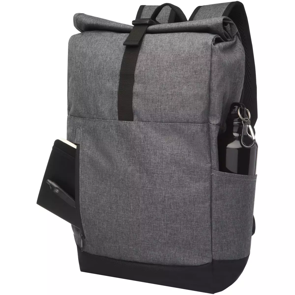 Batoh s polstrovanou přihrádkou na notebook do velikosti 15,6", polstrovanými nastavitelnými ramenními popruhy, hlavní kapsou na zip a rolovacím zavíráním v horní části.